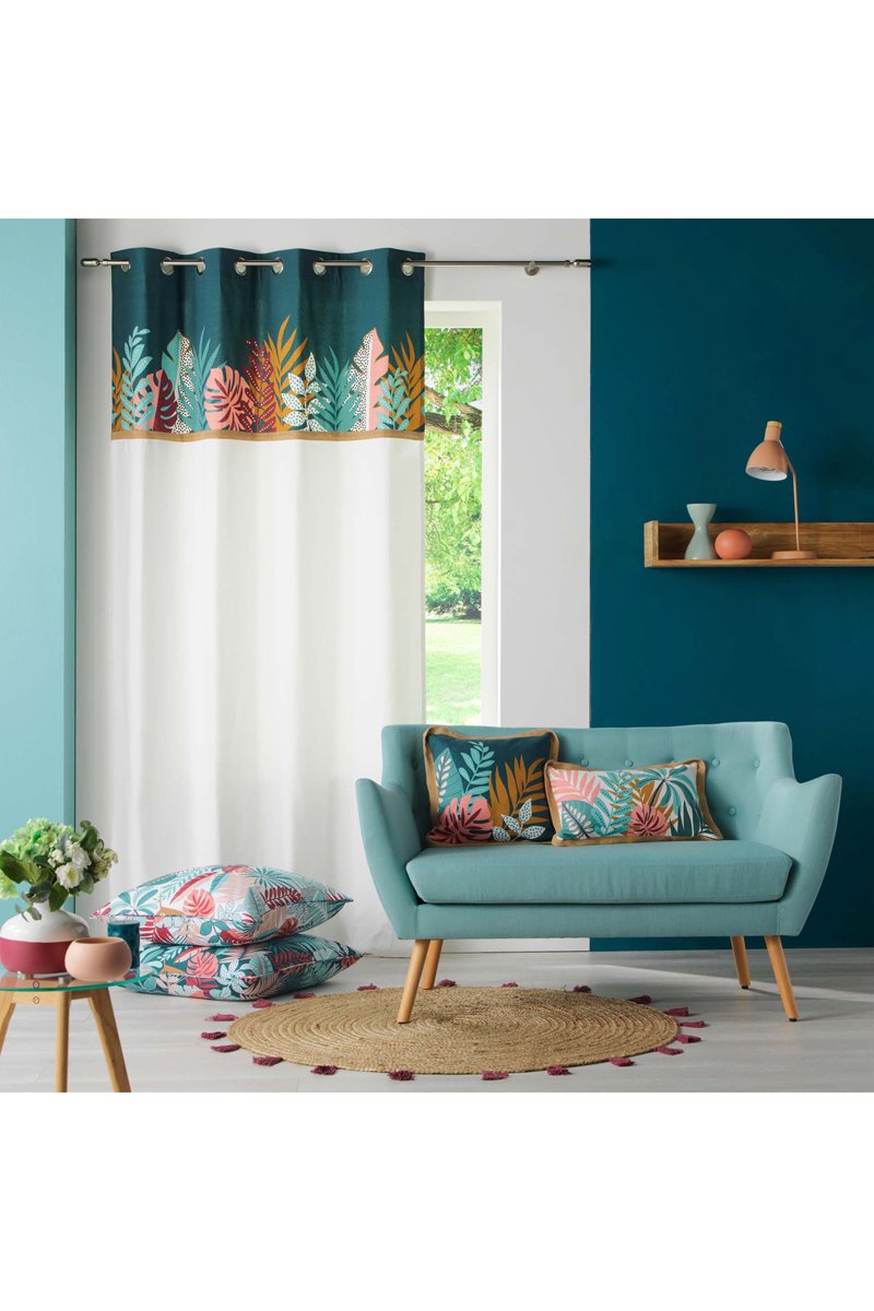Rideau Jacala - Blanc et bleu canard - 140 x 240 cm