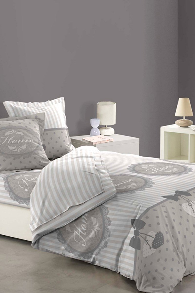 Parure de couette en coton 42 fils/cm² - Romantic Home - Gris et blanc