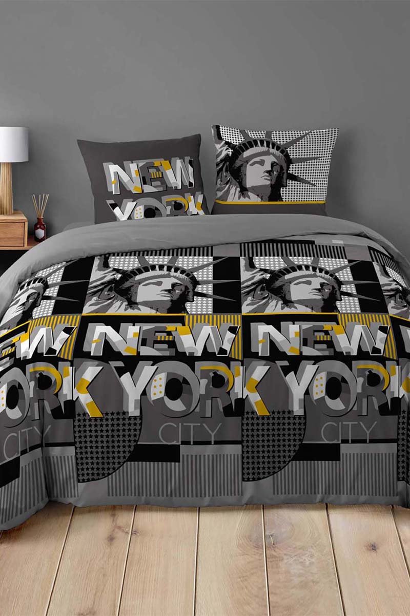Parure de couette en coton 42 fils/cm² Big City - Gris et noir
