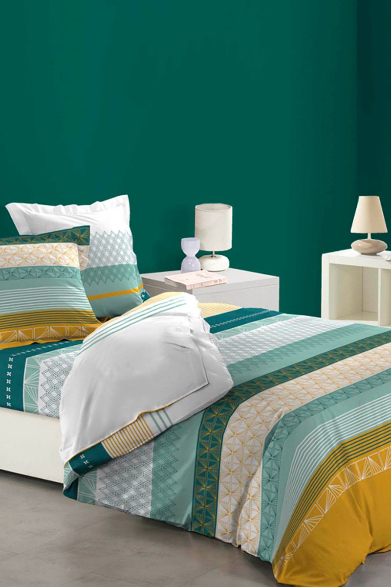 Parure de couette en coton 42 fils/cm² - Juliane - Blanc et bleu