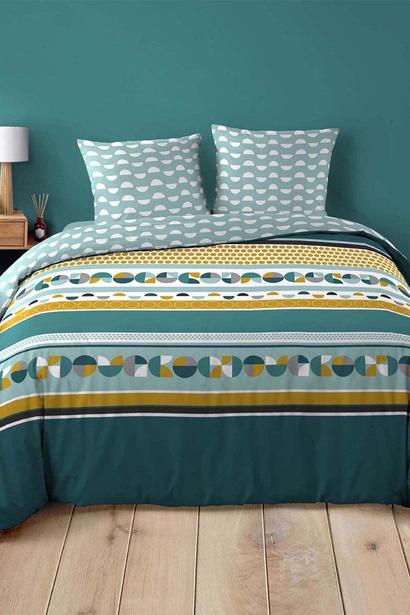 Parure de couette en coton 42 fils/cm² Doris - Bleu canard et jaune