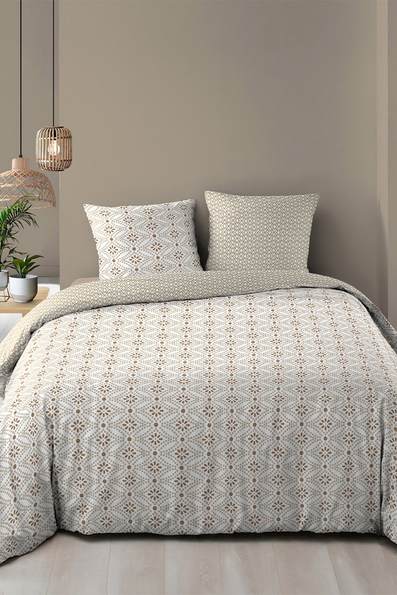 Parure de couette réversible en coton Brianna - Blanc et marron
