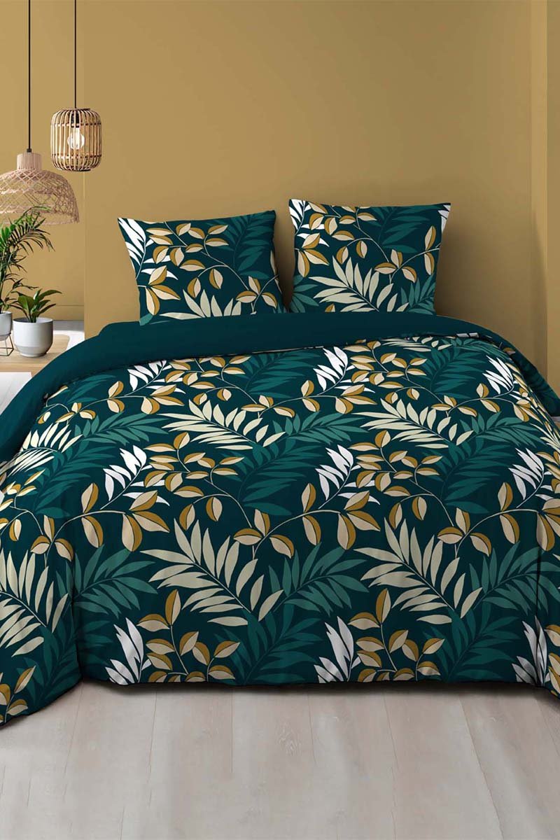 Parure de couette réversible en coton 57 fils/cm² Nelida - Vert et beige