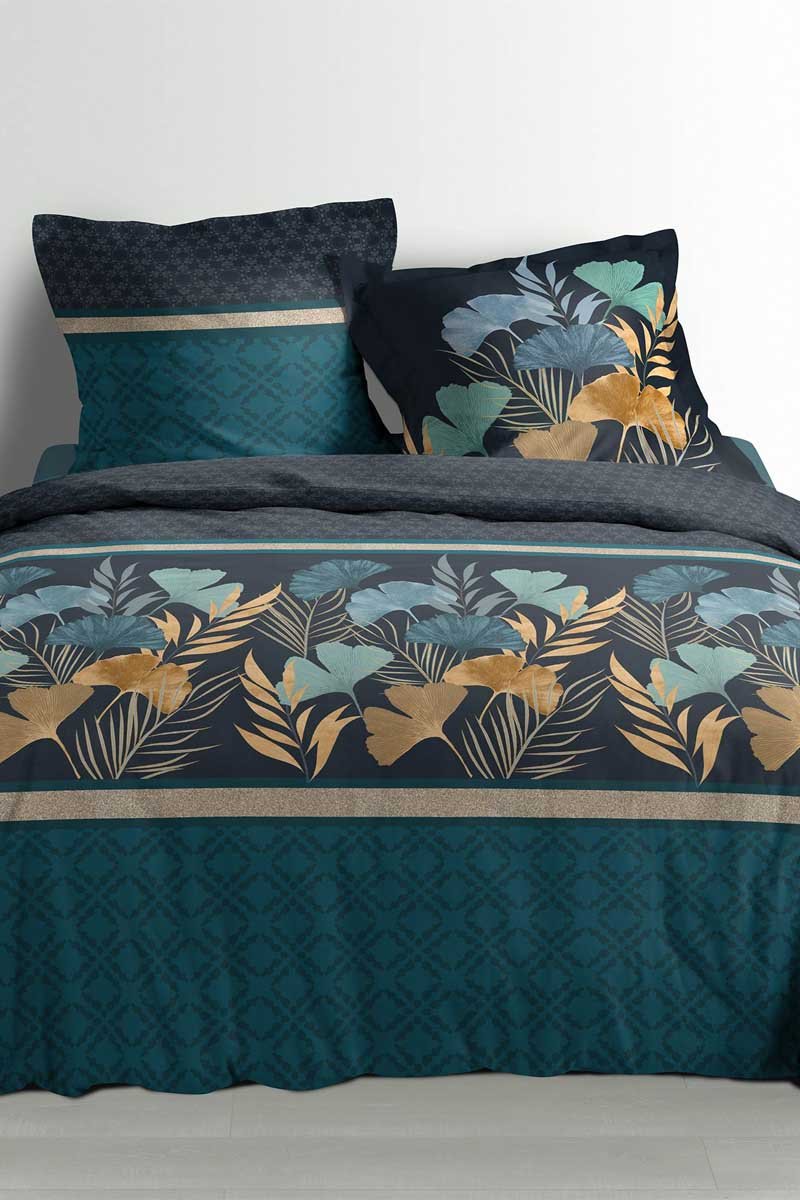 Parure de couette en percale de coton 78 fils/cm² Blondy - Bleu canard et anthracite