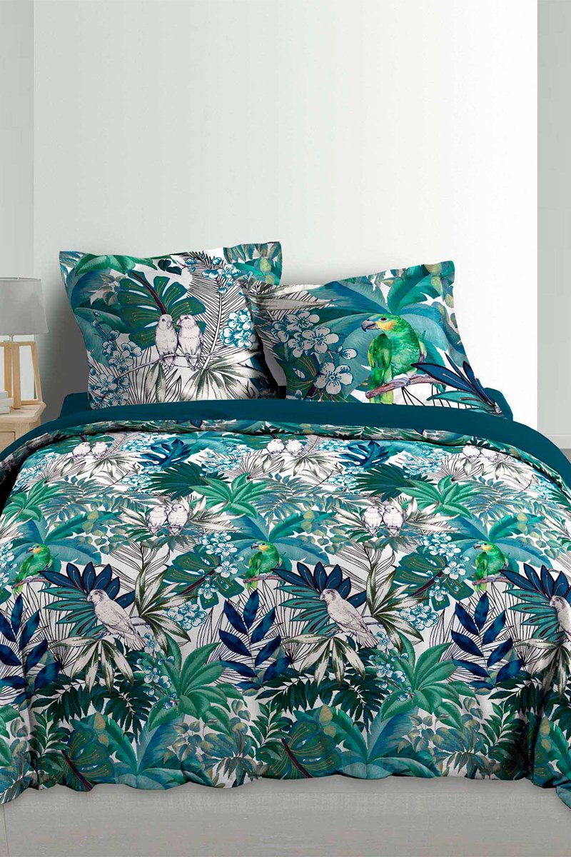 Parure de couette en coton 78 fils/cm² Allover Colibri - Vert et blanc