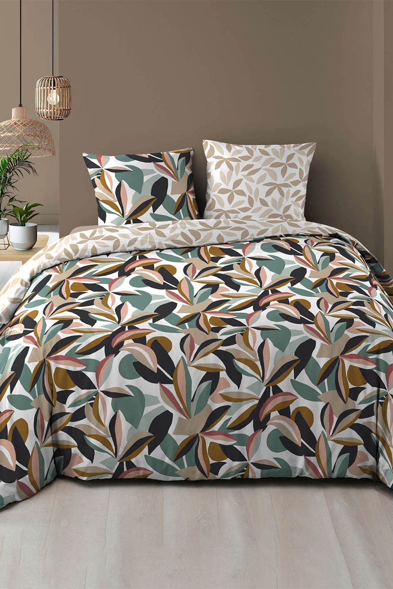 Parure de couette en coton 57 fils/cm² Lavinia - Marron et bleu canard