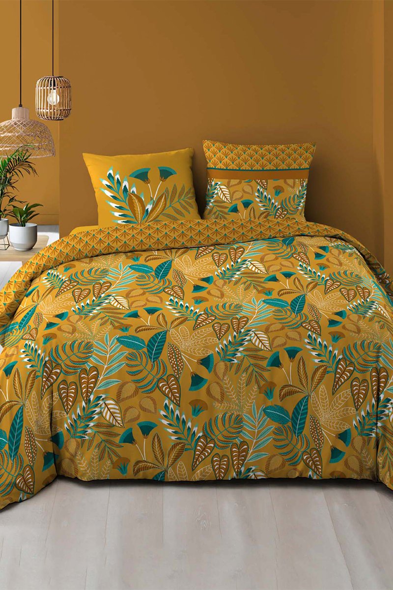 Parure de couette en coton 57 fils/cm² Tilda - Jaune et vert