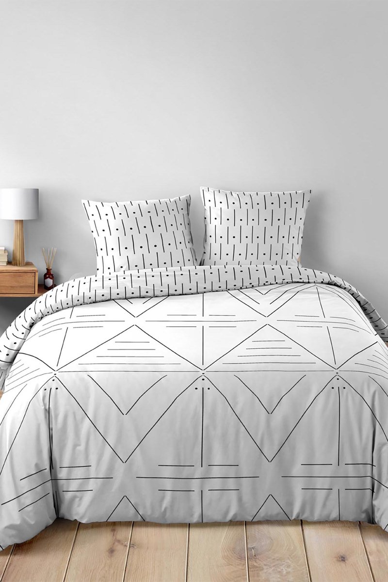 Parure de couette Etna en coton 90 fils/cm² - Blanc et gris