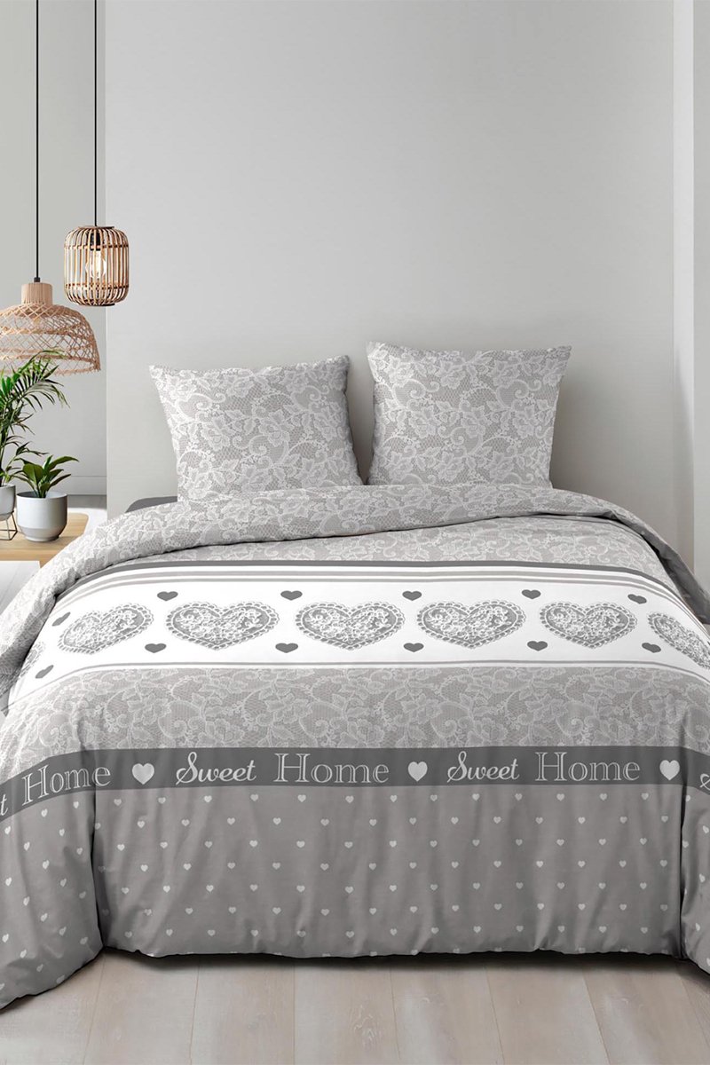 Parure de couette Lova en coton 105 fils/cm² - Blanc et gris