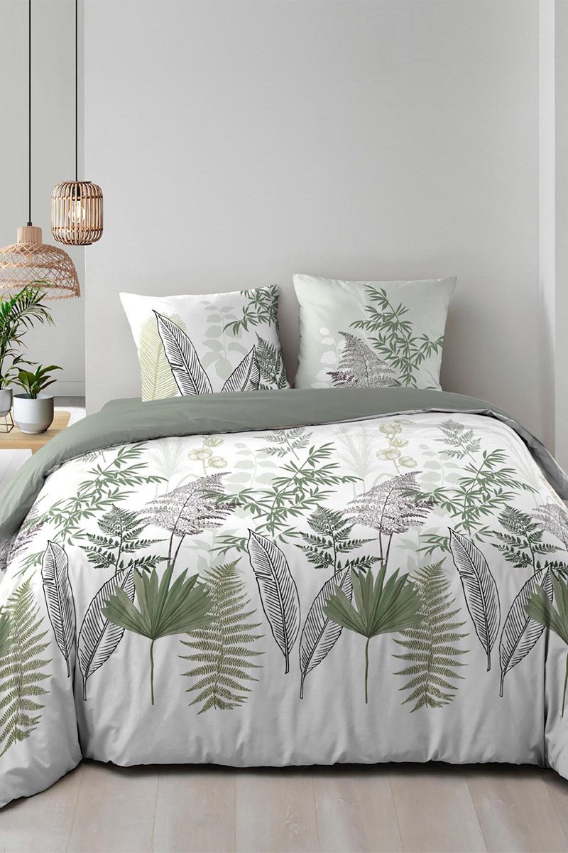 Parure de couette en coton 57 fils/cm² Primavera - Blanc et vert - 240 x 220 cm