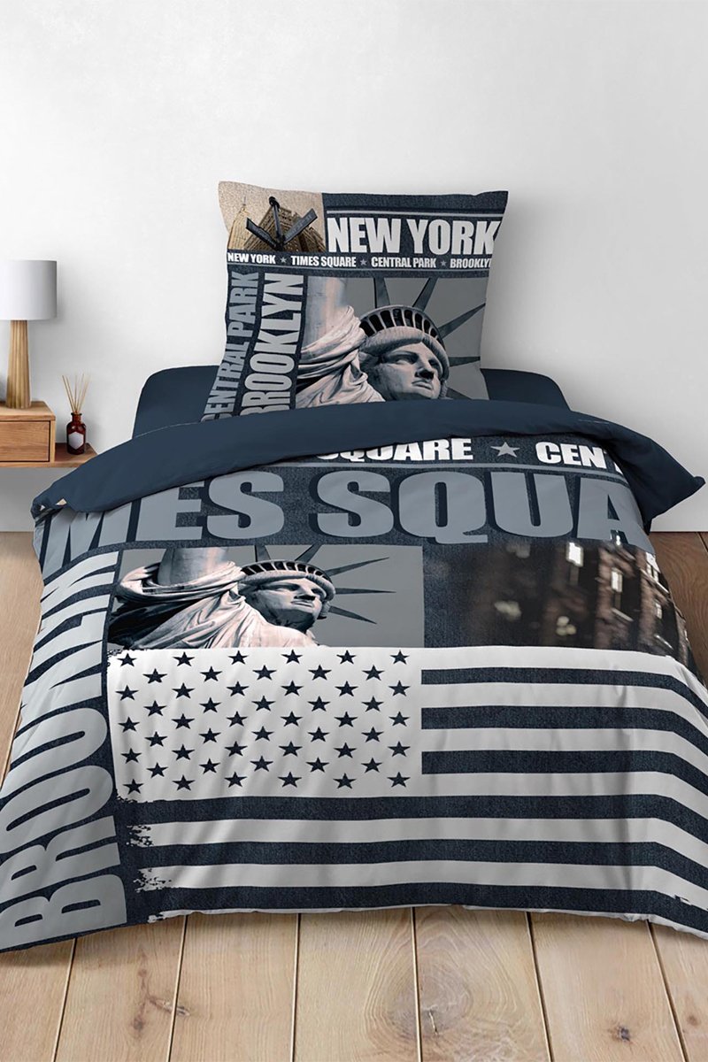 Parure de couette Brooklyn en coton 90 fils/cm² - Gris et blanc
