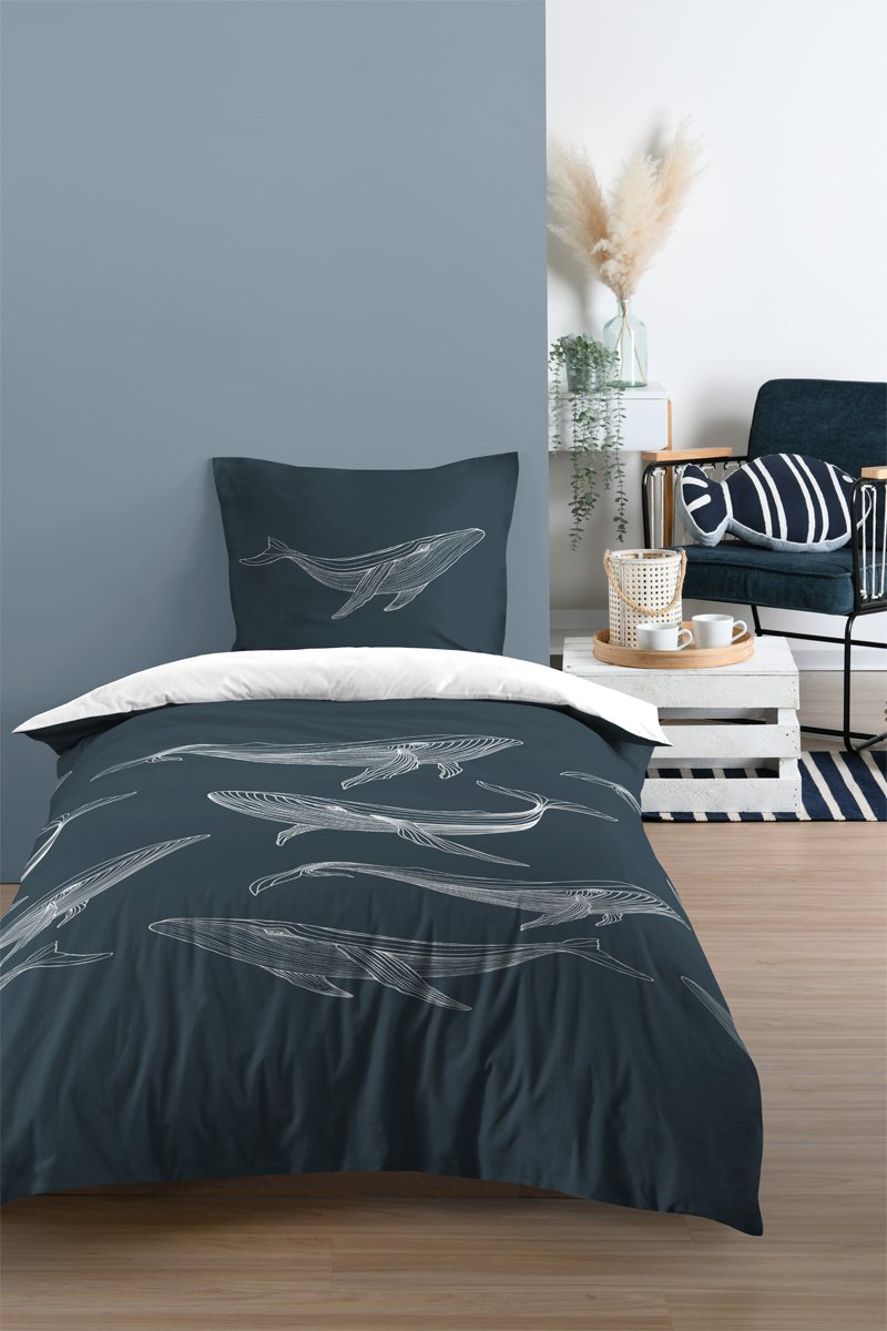 Parure de couette en coton - 57 fils/cm² - Bleu marine