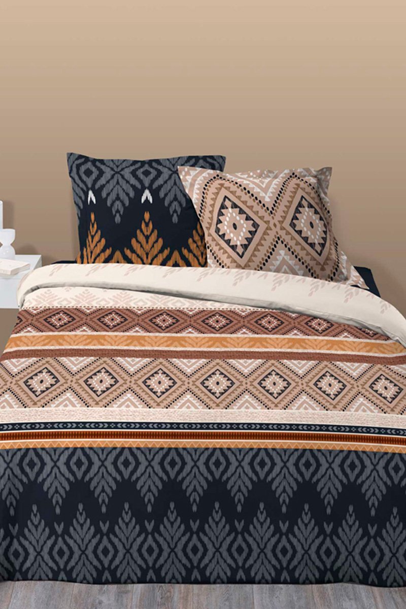 Parure de couette en flanelle de coton - Mongori - Marron et noir