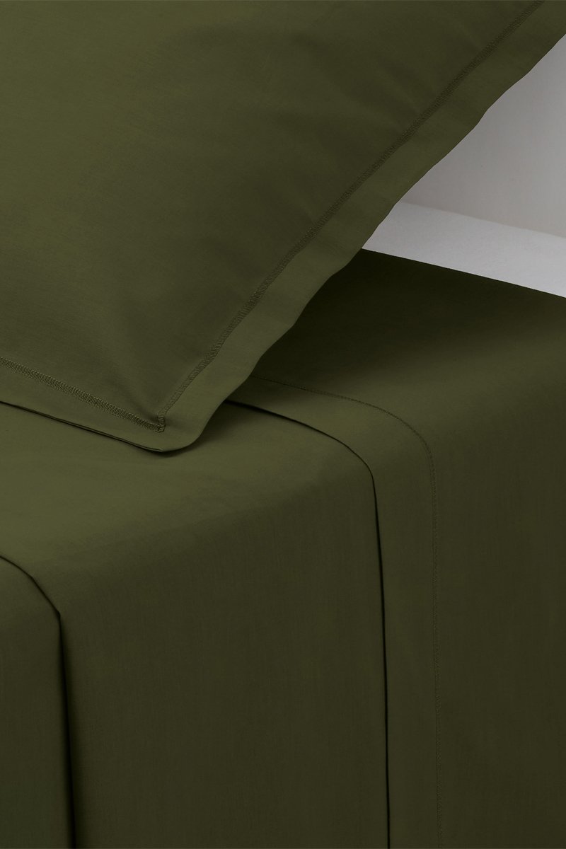 Drap plat en percale de coton 115 g/m² - Vert kaki