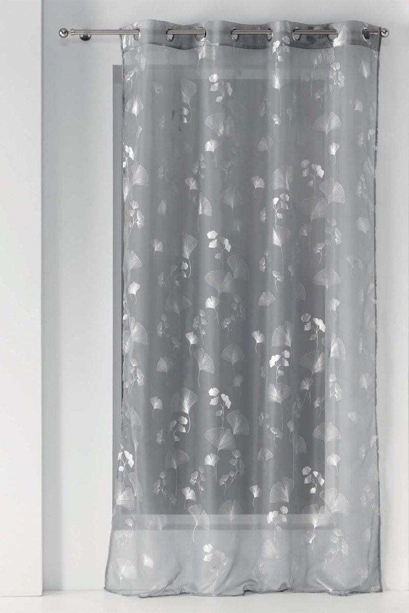 Voilage Bloomy - Gris et argenté - 140 x 240 cm