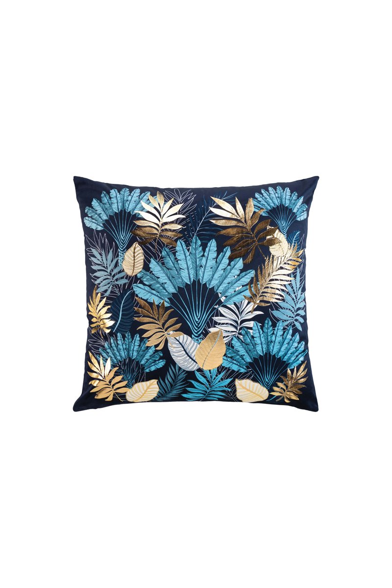 Housse de coussin en velours Panazio - 60 x 60 cm - Bleu et doré