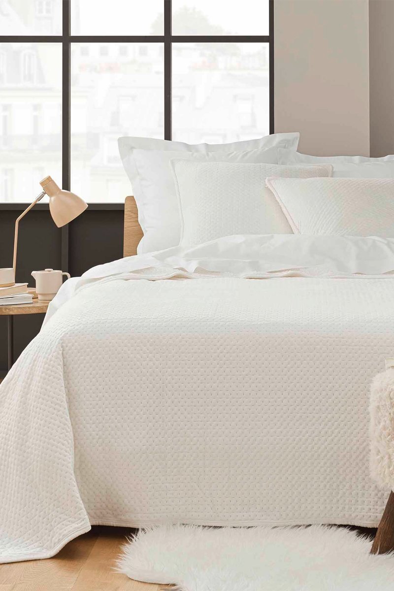 Couvre-lit et taies d'oreiller en velours Mylene - Crème