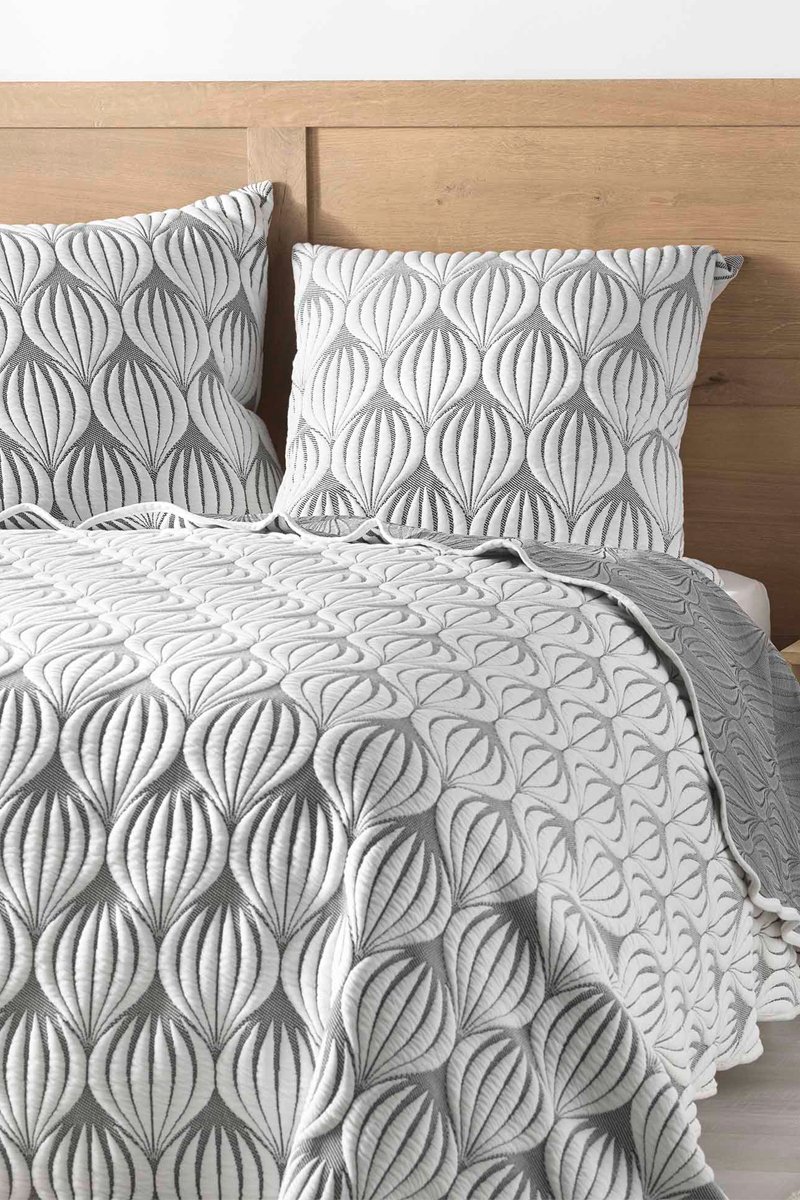 Couvre-lit matelassé Faustine - Blanc et gris