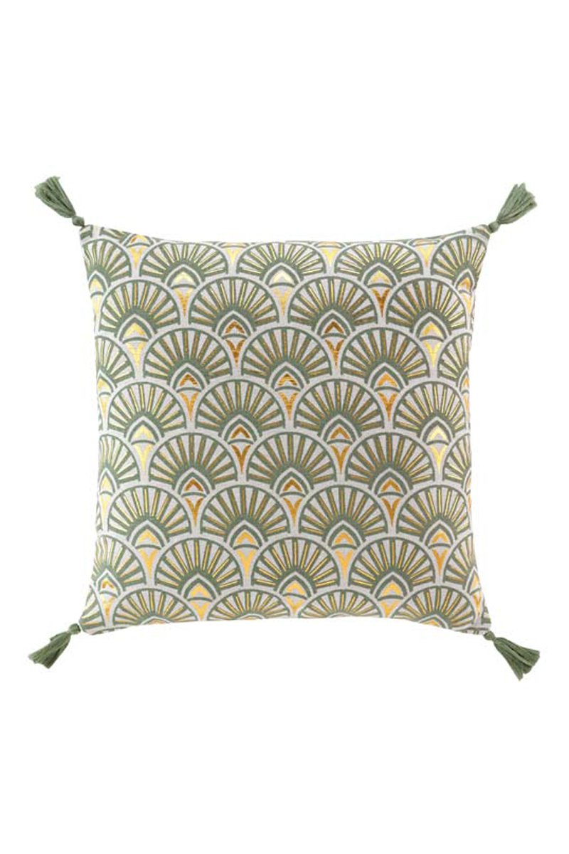 Coussin déhoussable Icare - Vert et doré - 45 x 45 cm