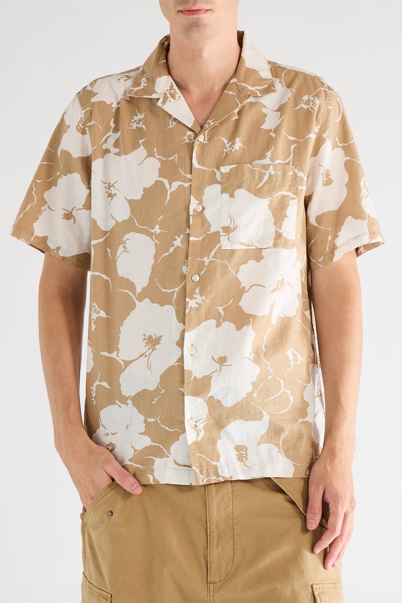 Chemise en lin mélangé à manches courtes.