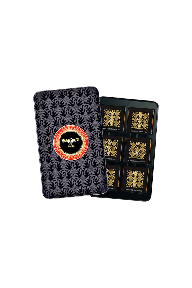 Un élégant plumier en métal noir contenant 12 carrés dégustation de chocolat noir pur beurre de cacao aux éclats de fèves de cacao. Pratique et distingué, vous aurez plaisir à le conserver longtemps après en avoir savouré le contenu.