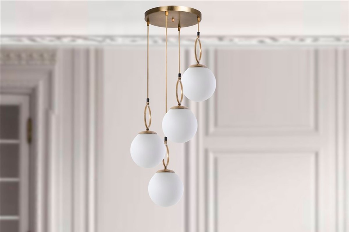Suspension Morino - Blanc et doré - 4 x 60 W