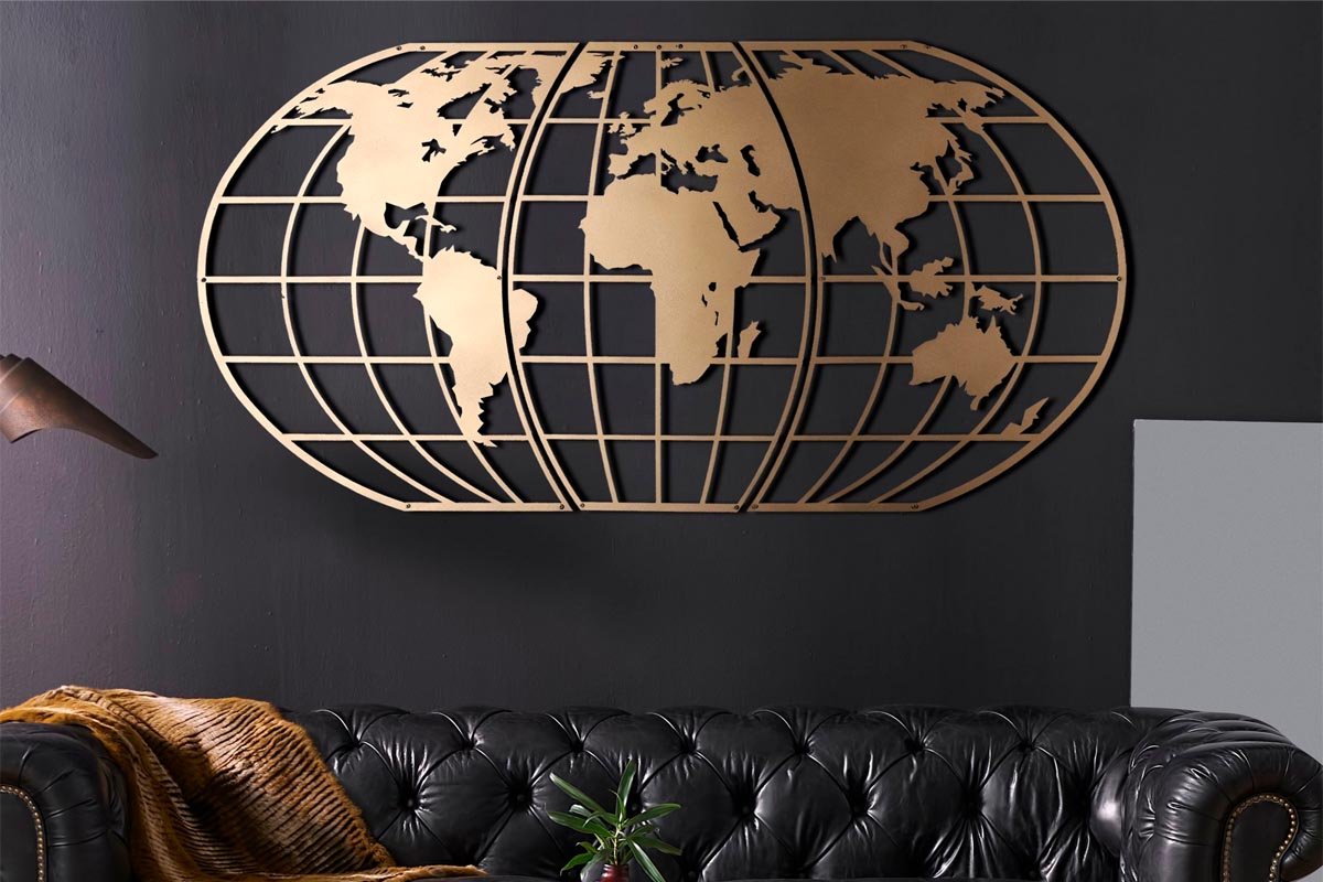 Décoration murale World Map Globe - 60 x 120 cm - Doré -