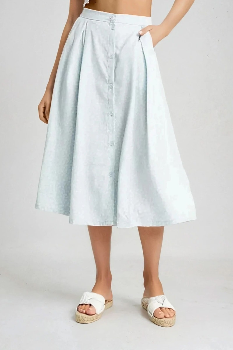 Jupe midi taille haute - Bleu - Monki