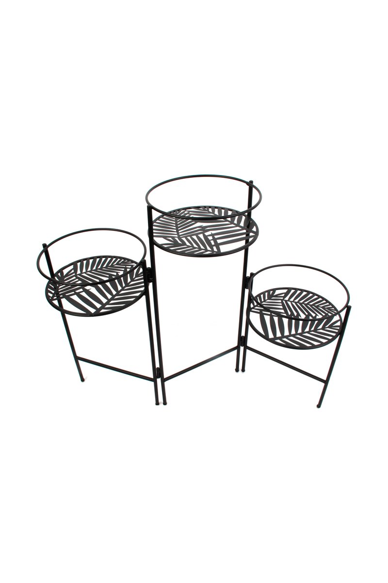 Porte plantes éventail 3 en 1 - Noir - 66,5 x 21 x 50 cm