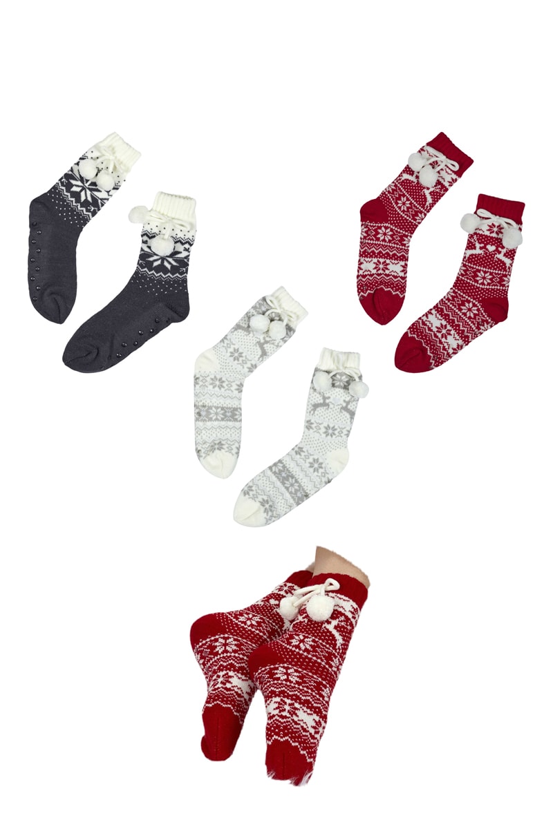 Chaussettes antidérapantes avec pompons.