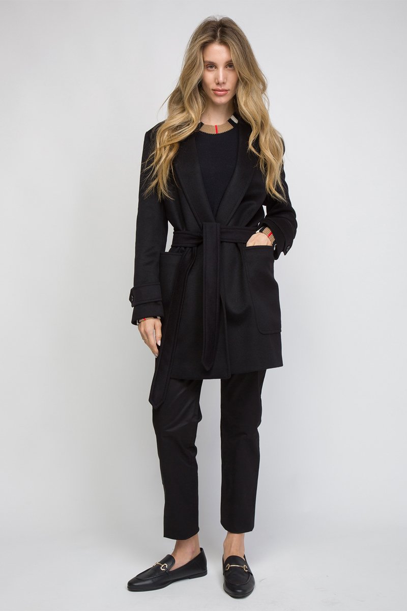 Manteau en laine et cachemire Sherringham short A23O - Noir