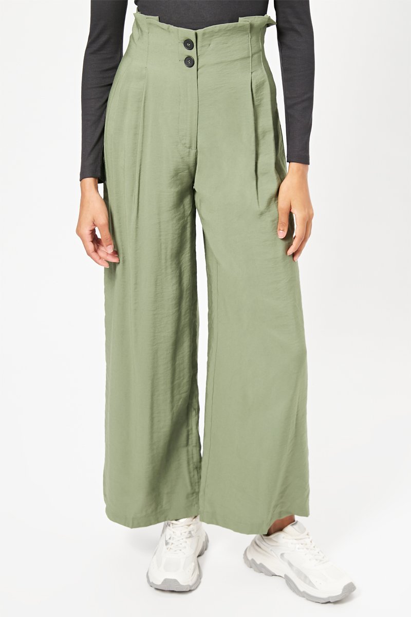 Pantalon wide legs - Vert