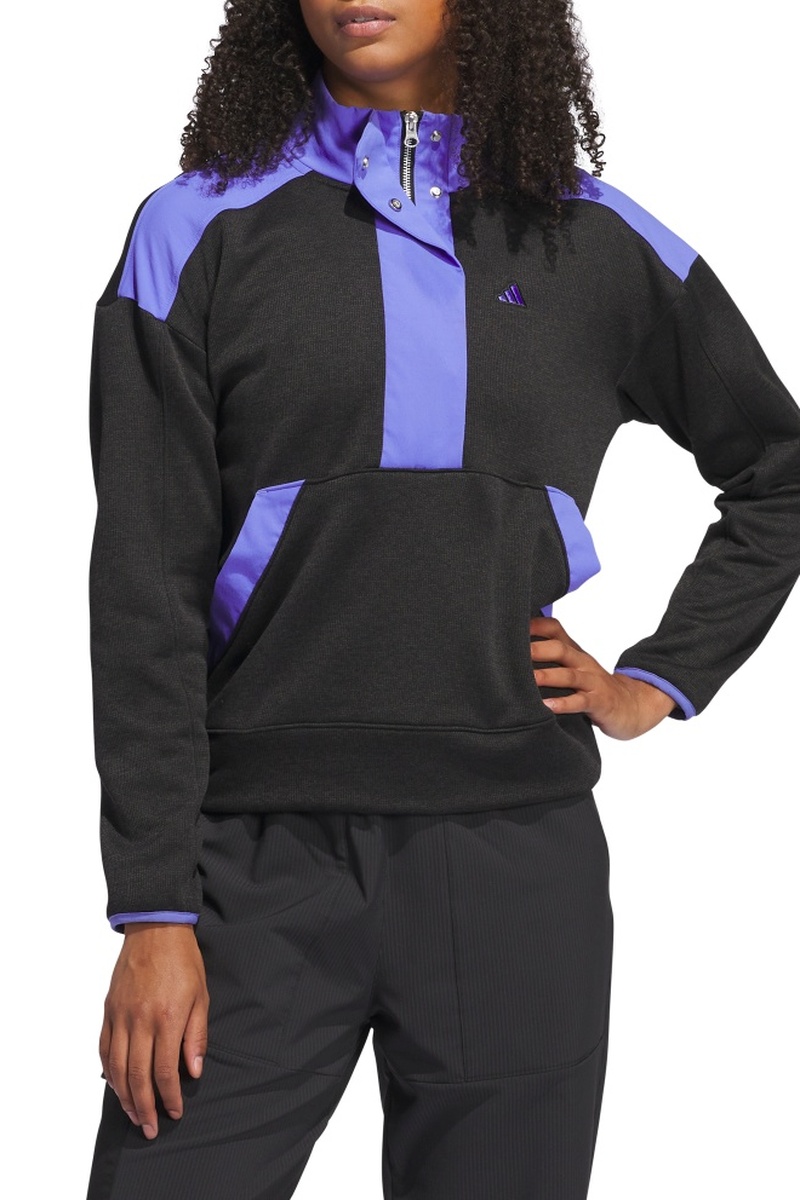 Empiècements contrastants à l’encolure, aux épaules, sur les manches et devant.