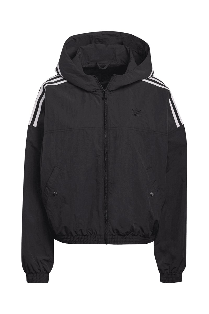 Bandes contrastantes sur la capuche, aux épaules et sur les manches.