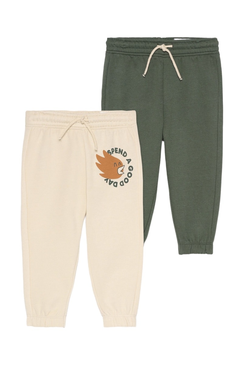 2 joggings dont 1 avec lettrage et motifs fantaisie devant.