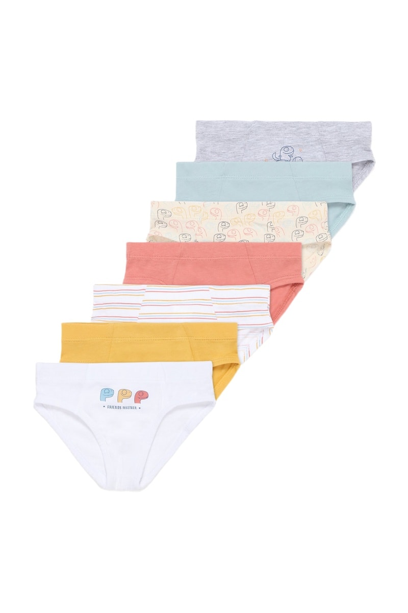 7 culottes dont 1 avec lettrage et motifs fantaisie devant, 1 à motifs à rayures, 1 à motifs fantaisie et 1 à motifs fantaisie devant.