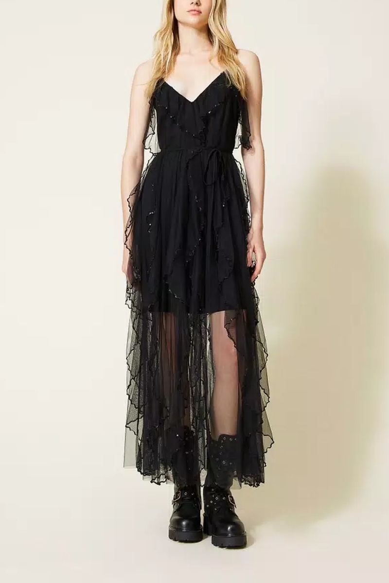 Robe longue en tulle.