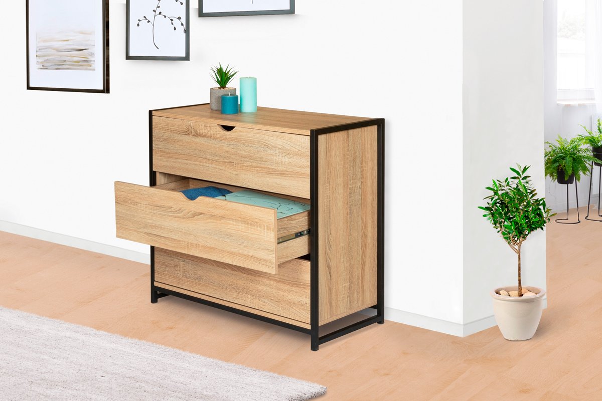 Commode 3 tiroirs Manufacture - Imitation bois clair et noir