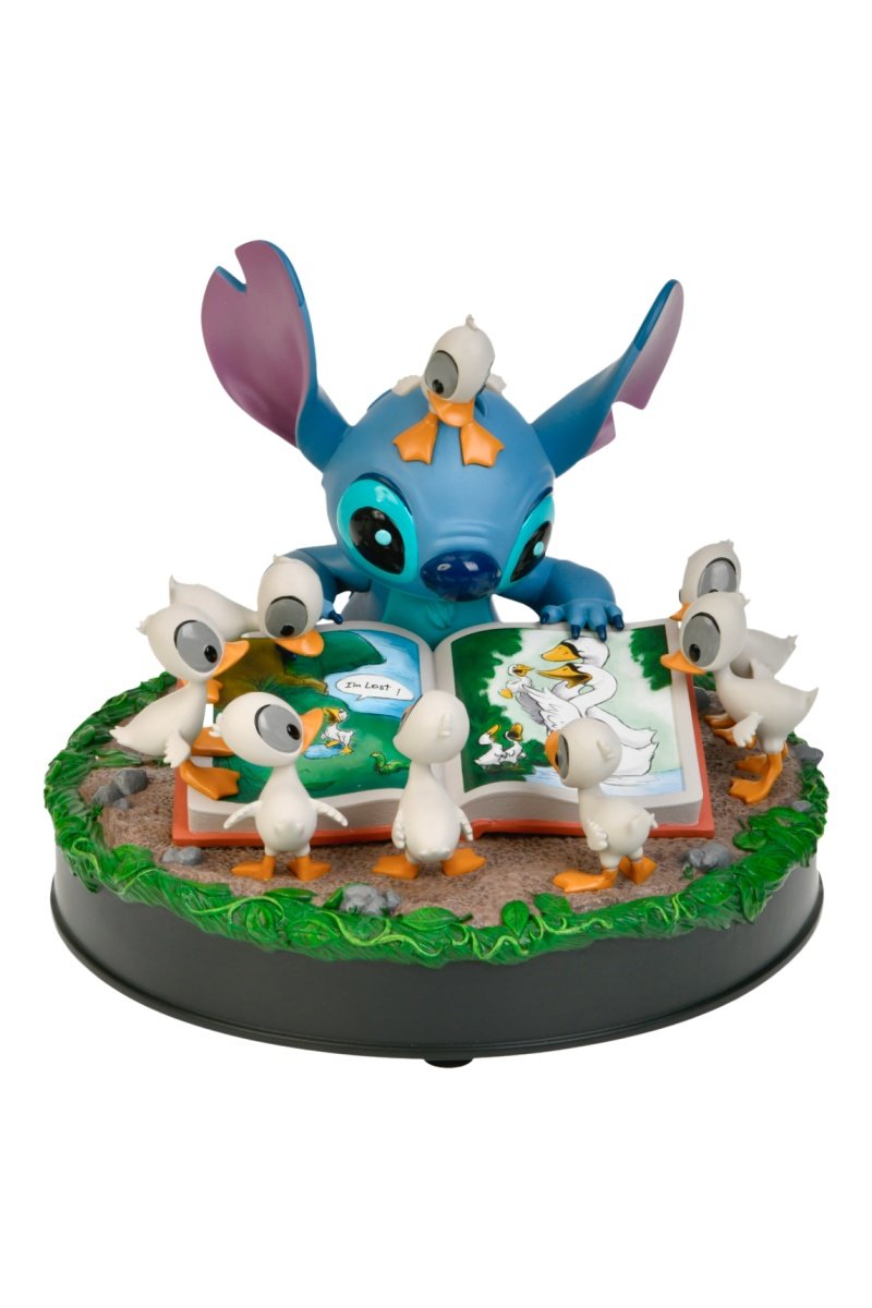 Les petits canards se rassemblent autour de Stitch alors que celui-ci tourne les pages de leur histoire préférée, le Villain Petit Canard, bien sûr. Cette adorable figurine s’inspire de la scène mémorable et touchante du film d'animation Disney, Lilo & Stitch.