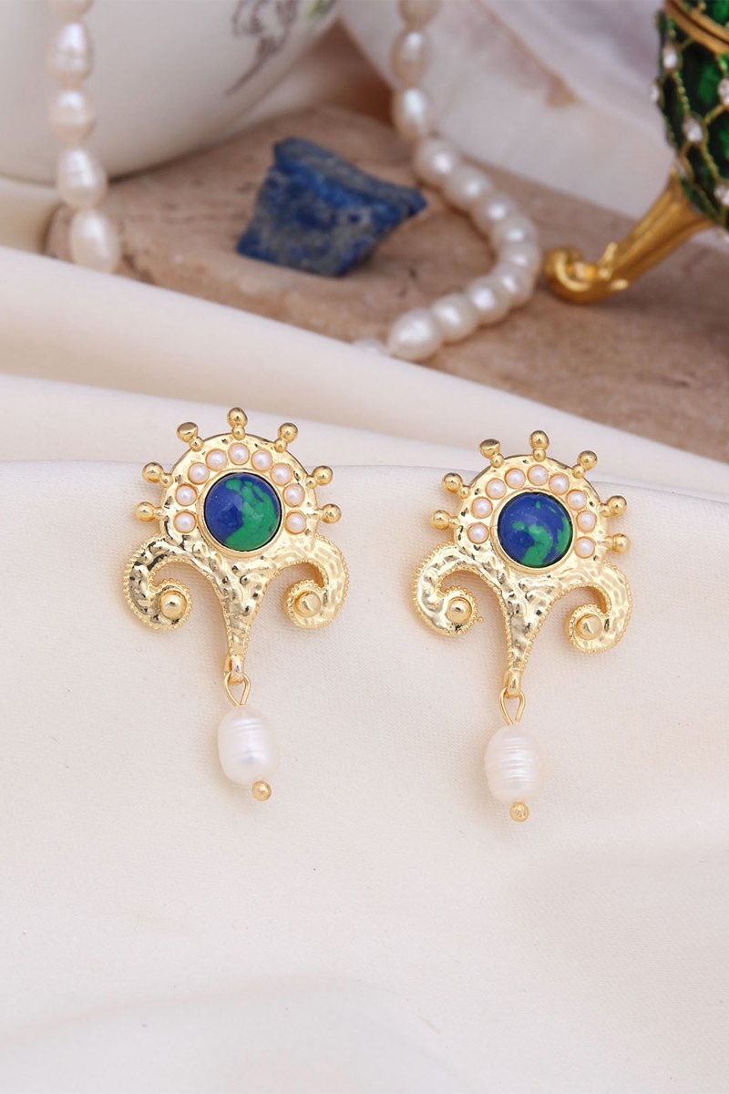 Boucles d’oreilles serties d’une variscite et de perles d’imitation.
