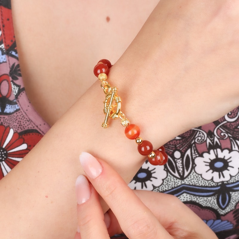 Craquez pour ce bracelet en laiton plaqué or, délicatement orné d'agates, offrant un mélange subtil de raffinement et de couleur. Un bijou élégant qui ajoutera une touche unique à votre poignet.