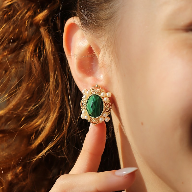 Offrez ou faites vous plaisir avec ces élégantes boucles d'oreilles, associant malachite et perle… Un bijou raffiné qui apportera une touche de couleur et de sophistication à votre look !