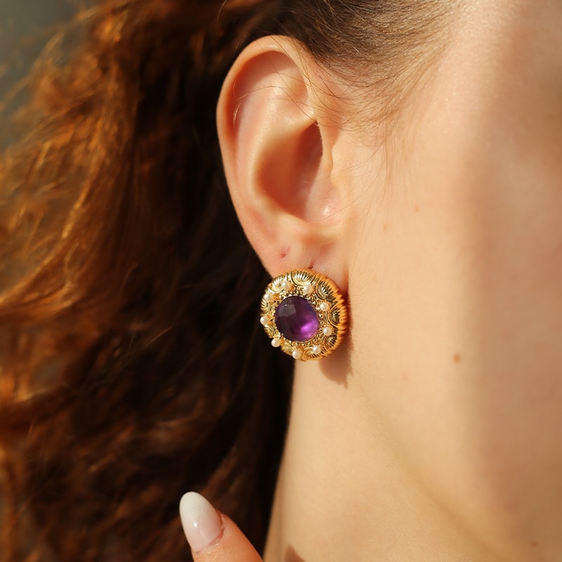 Apportez une touche de couleur et de raffinement à votre look grâce à cette paire de boucles d'oreilles. La profondeur de l'améthyste, avec ses nuances violettes captivantes, crée un bijou élégant et intemporel. On adore !