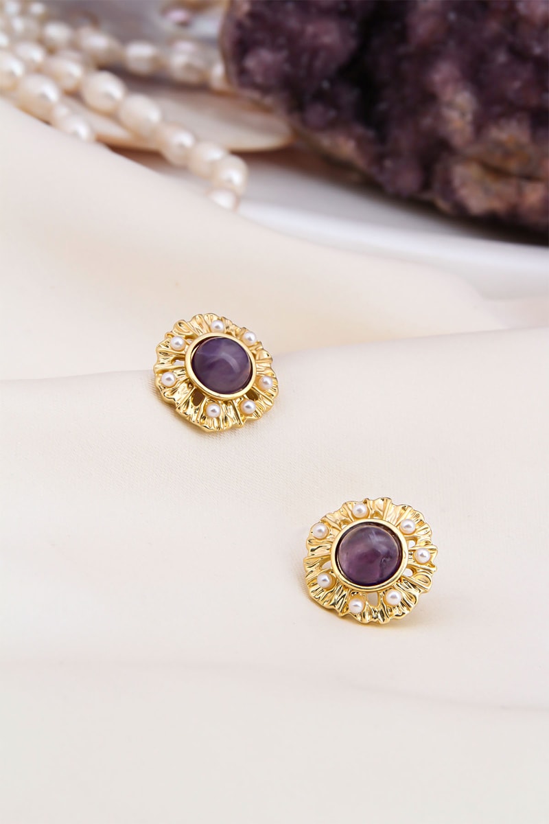 Puces serties d’une améthyste et de 7 perles d’imitation.