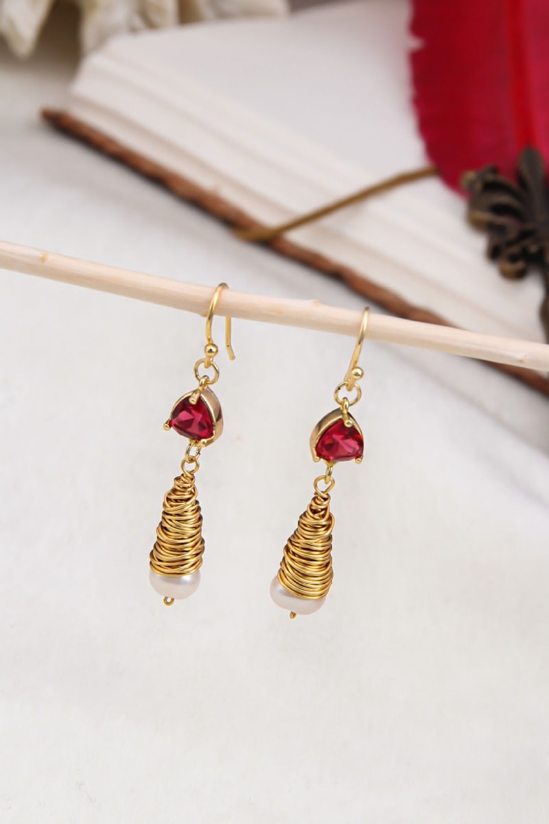 Matière : laiton plaqué or jaune, cuivre, zircons et perles de culture