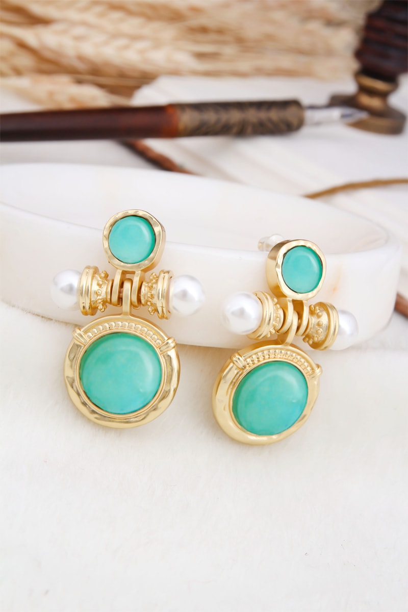 Puces serties de 2 amazonites et de 2 perles d’imitation.
