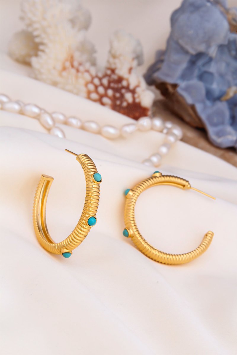 Créoles dorées à l'or fin jaune serties de turquoises.