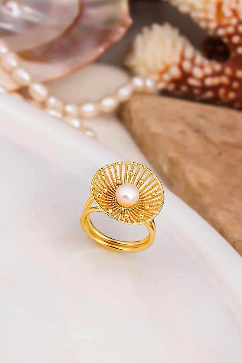 Bague doré à l'or fin jaune sertie d’une perle de culture.