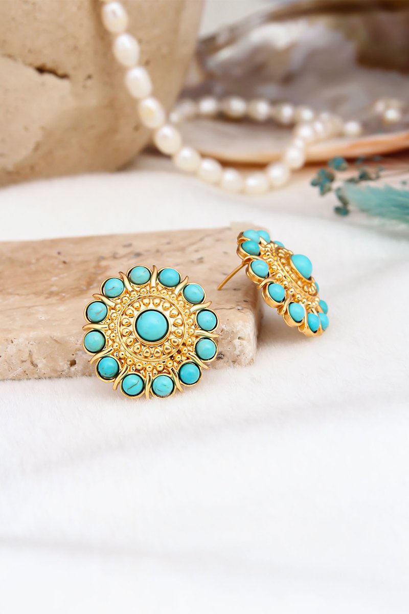 Boucles d’oreilles dorées à l'or fin jaune serties de turquoises.