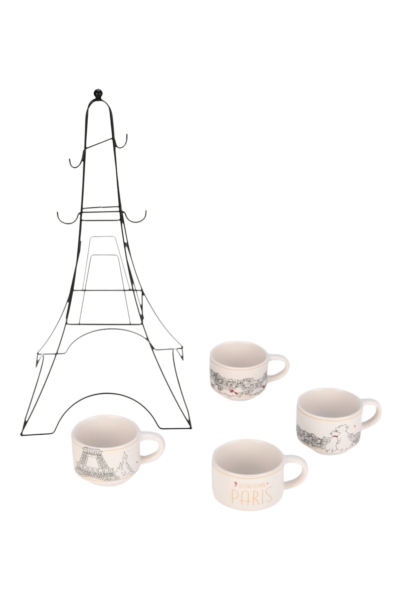 4 tasses à café en grès et 1 support Les Aristochats Disney